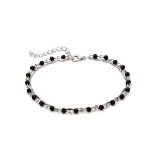 Black Beads Decorated Concise Fashion Women Anklet – Silver