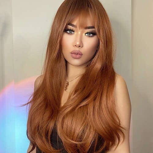 $30.02 Select options This product has multiple variants. The options may be chosen on the product pageEuropean and American Blunt Bangs Red-brown Color Curly Long Synthetic Hair Women Wig