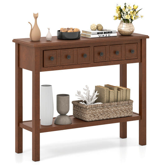 $346.00 Select options This product has multiple variants. The options may be chosen on the product page2-Tier Console Table with Drawers and Open Storage Shelf-Natural
