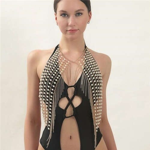 $7.46 Select options This product has multiple variants. The options may be chosen on the product pageEuropean and American Pearl Necklace Wholesale Tassel Body Chain Jewelry Female Chest Chain