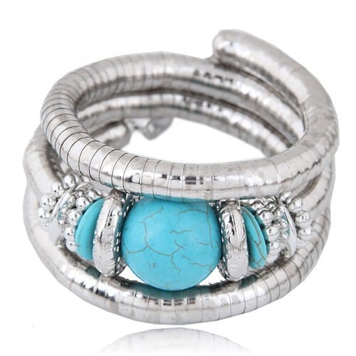 $3.02 Select options This product has multiple variants. The options may be chosen on the product pageArtificial Turquoise Embellished Triple Layers Chunky Fashion Alloy Bracelet – Blue