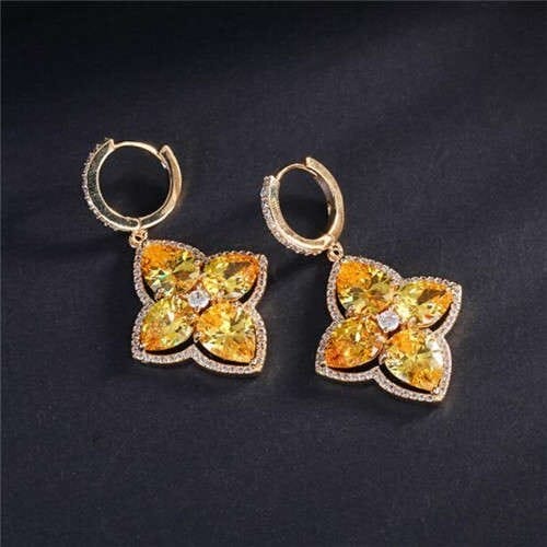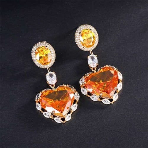 Wholesale Jewelry Glistening Cubic Zirconia Vintage Romantic Lily Flower Copper Earrings – Orange