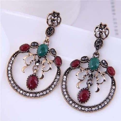 $6.99 Select options This product has multiple variants. The options may be chosen on the product pageWholesale Jewelry Vintage Style Hollow-out Round Floral Pendant Dangle Bold Fashion Earrings – Red