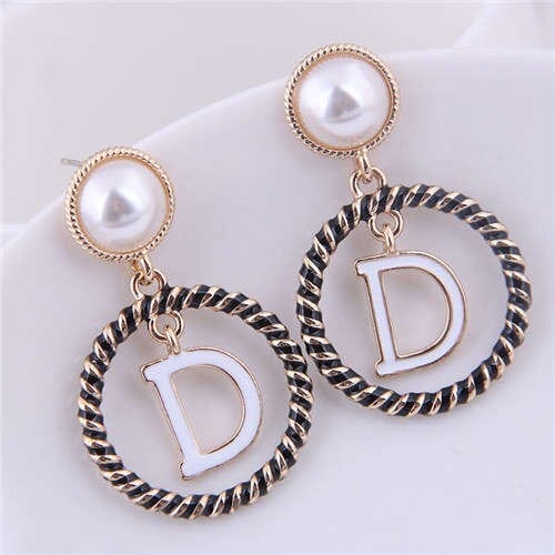 $7.18 Select options This product has multiple variants. The options may be chosen on the product pageAlphabet D Inlaid Alloy Hoop Design Women Fashion Statement Earrings