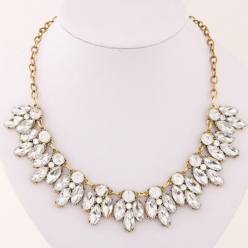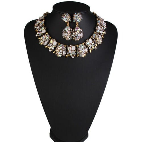 $3.82 Select options This product has multiple variants. The options may be chosen on the product pageClassic Design Glass Gem Inserted Women Statement Bib Necklace and Earrings Set – White