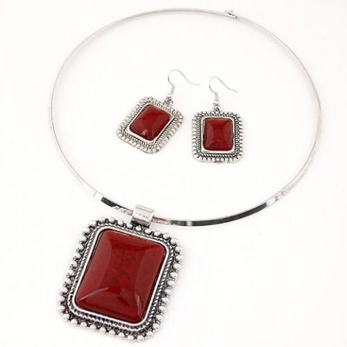 $6.86 Select options This product has multiple variants. The options may be chosen on the product pageVintage Beaded Rim Square Turquoise Pendant Necklace and Earrings Set – Red