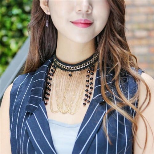 $6.38 Select options This product has multiple variants. The options may be chosen on the product pageBeads Cluster with Chain Tassel and Bulk Chain Attached High Fashion Lace Choker Necklace