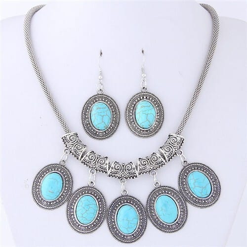 $13.26 Select options This product has multiple variants. The options may be chosen on the product pageVintage Artificial Turquoise Women Wholesale Beads Weaving Fashion Necklace and Earrings Set