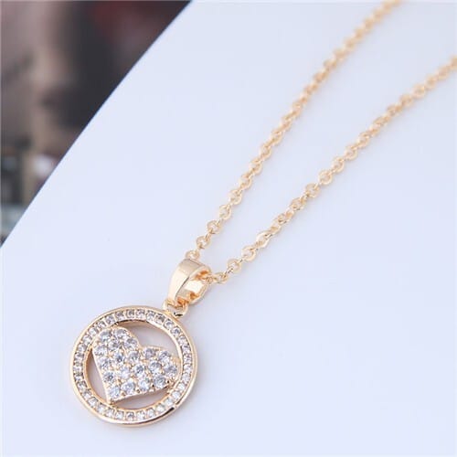 $7.81 Select options This product has multiple variants. The options may be chosen on the product pageAustrian Zircon Inlaid Hollow Profile Design Heart Pendant Necklace – Rose Gold