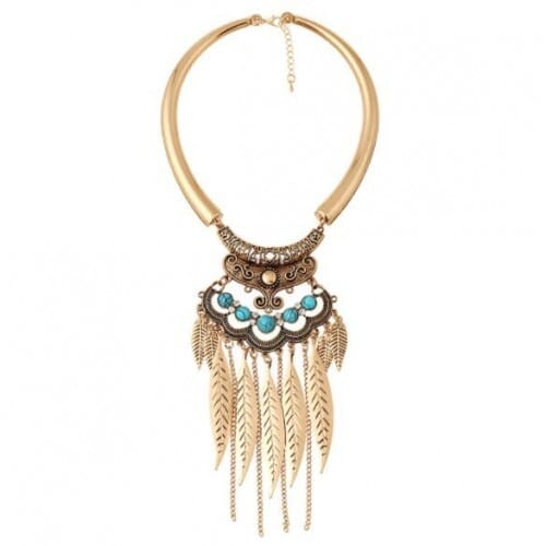 $4.78 Select options This product has multiple variants. The options may be chosen on the product pageAlloy Leaves Tassel Fashion Resin Gems Decorated Folk Style Statement Necklace – Golden and Blue
