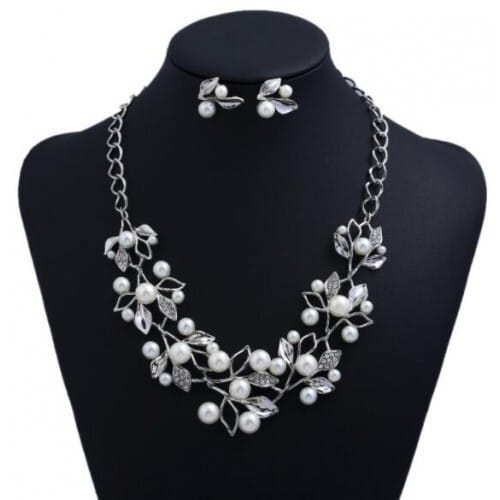 $6.78 Select options This product has multiple variants. The options may be chosen on the product pageArtificial Pearl Inlaid Hollow Leaves Alloy Fashion Costume Necklace and Earrings Set