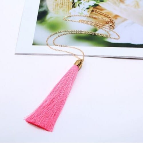 $8.62 Select options This product has multiple variants. The options may be chosen on the product pageWaterdrops Tassel and Beads Decorated Solid Color Cotton Women Scarf Necklace – Rose