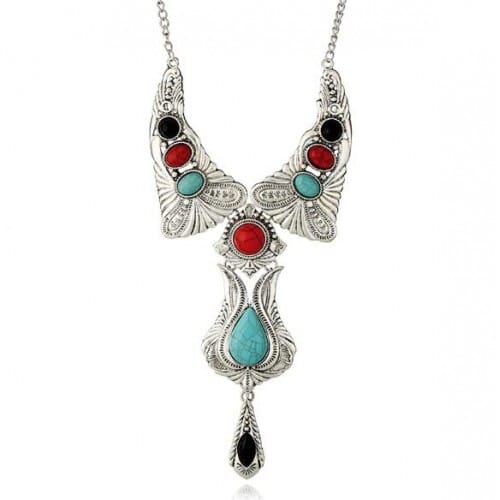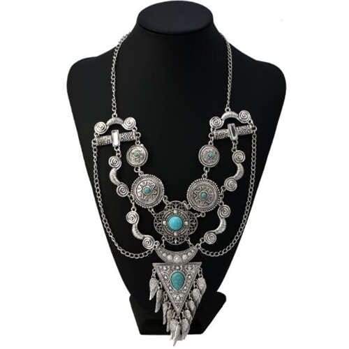 $3.18 Select options This product has multiple variants. The options may be chosen on the product pageArtificial Turquoise Embellished Vintage Design Bold Fashion Women Statement Bib Necklace – Silver