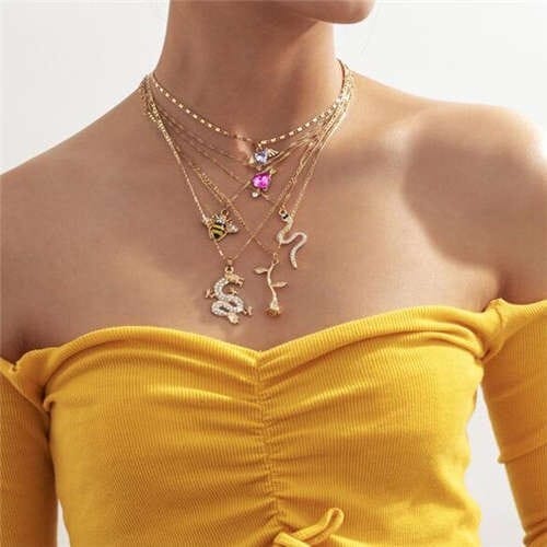 $2.54 Select options This product has multiple variants. The options may be chosen on the product pageBlack Chain Fashion Wholesale Jewelry Peach Hearts Snake Pendant Multi-layers Punk Necklace