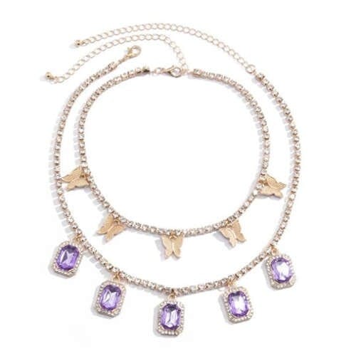 $5.41 Select options This product has multiple variants. The options may be chosen on the product pageButterflies and Gems Decorated Rhinestone Chain U.S. High Fashion Women Necklace – Purple