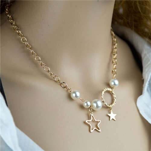 $5.42 Select options This product has multiple variants. The options may be chosen on the product pageArtificial Pearl and Star Pendants Golden Chain U.S. High Fashion Women Necklace
