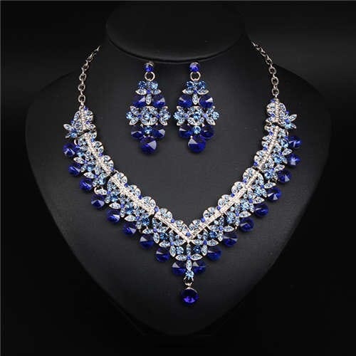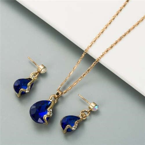 $3.17 Select options This product has multiple variants. The options may be chosen on the product pageV Shape Water Drop Design Evening Dress Luxury Jewelry Wholesale Necklace and Earrings – Blue