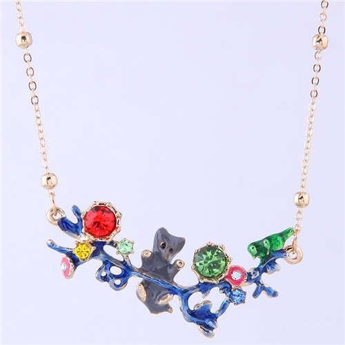 $4.61 Select options This product has multiple variants. The options may be chosen on the product pageBear and Bird Shining Garden Design Pendant Enamel Women Fashion Bib Necklace – Green