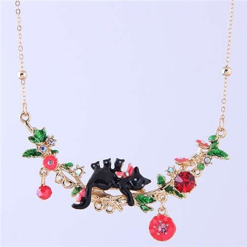 $4.30 Select options This product has multiple variants. The options may be chosen on the product pageCat and Flowers Oil-spot Glazed Western Fashion Women Bib Statement Necklace – Black