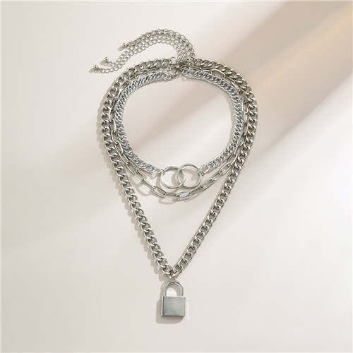 $8.45 Select options This product has multiple variants. The options may be chosen on the product pageBaroque Style Lock Pendant Multi-layer Chain Women Wholesale Necklace – Silver
