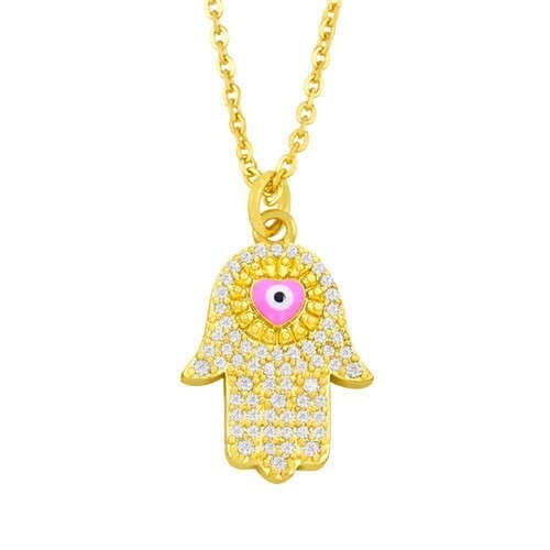 $5.58 Select options This product has multiple variants. The options may be chosen on the product pageAttractive Heart Shape Eye Palm Design Pendant U.S. Fashion Wholesale Jewelry Copper Necklace – Pink