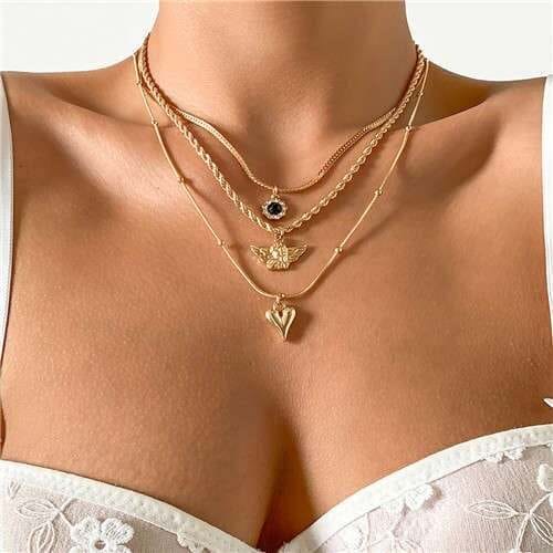 $4.29 Select options This product has multiple variants. The options may be chosen on the product pageWholesale Creative Beast Wings Heart Shape Dual Layers Design Fashion Popular Statement Necklace
