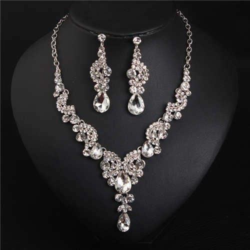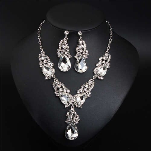 $13.26 Select options This product has multiple variants. The options may be chosen on the product pageV Shape Water Drop Design Evening Dress Luxury Jewelry Wholesale Necklace and Earrings – White