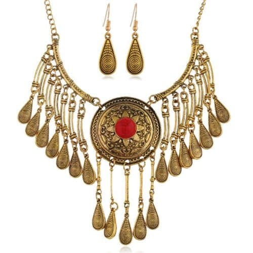$11.18 Select options This product has multiple variants. The options may be chosen on the product pageVintage Red Floral Pendant Tassel Design Wholesale Necklace and Earrings Set