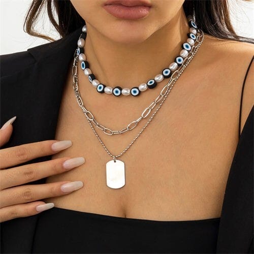 $6.38 Select options This product has multiple variants. The options may be chosen on the product pageBlue Beads Chain Classic Blue Color Eye and Pearl Pendants Three-layers Necklace