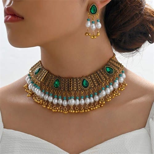 $6.38 Select options This product has multiple variants. The options may be chosen on the product pageVintage Green Gem Inlaid Pearl Beads Wholesale Necklace and Earrings Set