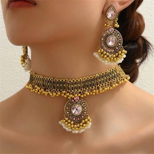 $10.69 Select options This product has multiple variants. The options may be chosen on the product pageVintage Pink Gems Inlaid Pearl Tassel Wholesale Fashion Necklace and Earrings Set