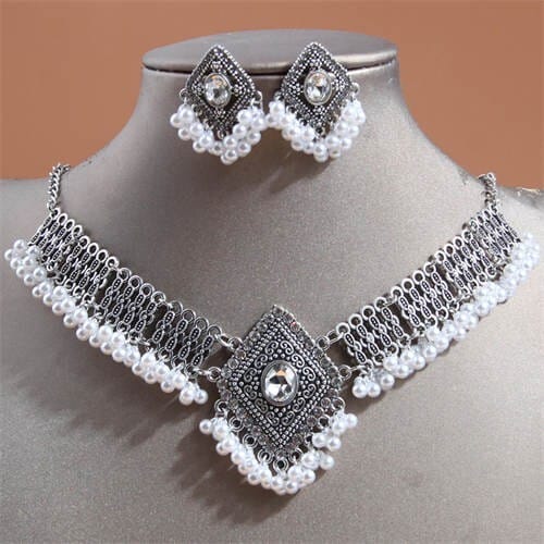 $10.22 Select options This product has multiple variants. The options may be chosen on the product pageVintage Rhombus Design Pearl Beads Tassel Women Wholesale Fashion Necklace and Earrings Set