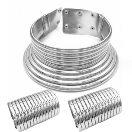 $13.90 Select options This product has multiple variants. The options may be chosen on the product pageAfrican Tribal Style Exaggerated Collar Necklace and Dual Bracelets Wholesale Set – Silver