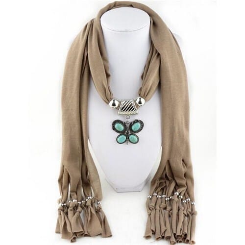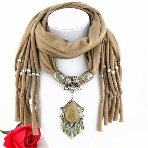 $7.98 Select options This product has multiple variants. The options may be chosen on the product pageWaterdrop Shape Stone Gem Ethnic Pendant Fashion Scarf Necklace – Khaki