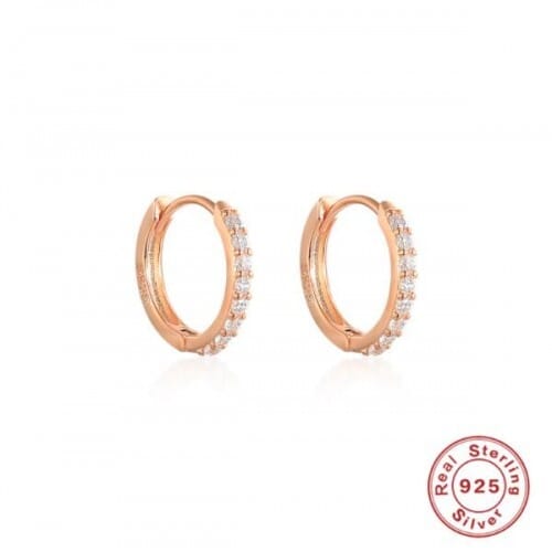 $9.10 Select options This product has multiple variants. The options may be chosen on the product page925 Sterling Silver Cubic Zirconia Minimalist Wholesale Rose Gold Huggie Earrings – White