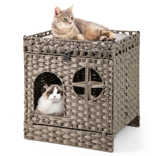$98.00 Select options This product has multiple variants. The options may be chosen on the product page2-tier Rattan Cat Nest with Removable Padded Cushion-Gray