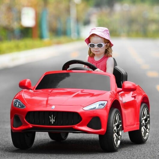 This Maserati licensed car with LED lights horn radio and music can offer kids extra fun.