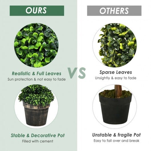 These trees do not take up too much space so you can put the 2 faux trees in the home office garden or store. Besides the leaves are made of durable and eco-friendly PE materials to imitate real leaves creating a natural and lush appearance. Most importantly the faux trees require no water soil fertilizer sunlight and pruning thus saving your time and energy. In addition the decorative trees are designed with cement-filled golden pots that ensure stability and durability for long-term use. And these 2-pack artificial spiral topiary trees are lightweight so that you can place them anywhere you like to add a hint of green and the breath of nature!