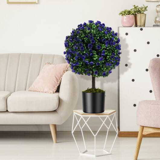● Set of 2 artificial rose topiary ball trees is perfect for indoors and outdoors