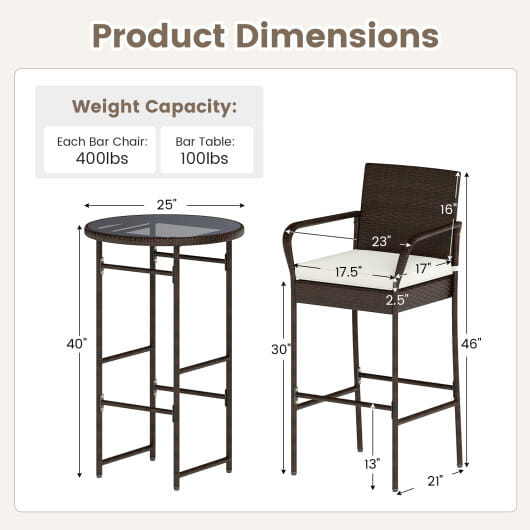 Be the first to review “3 Piece Outdoor Bar Set with 2 Seat Cushions for Porch Yard-White”