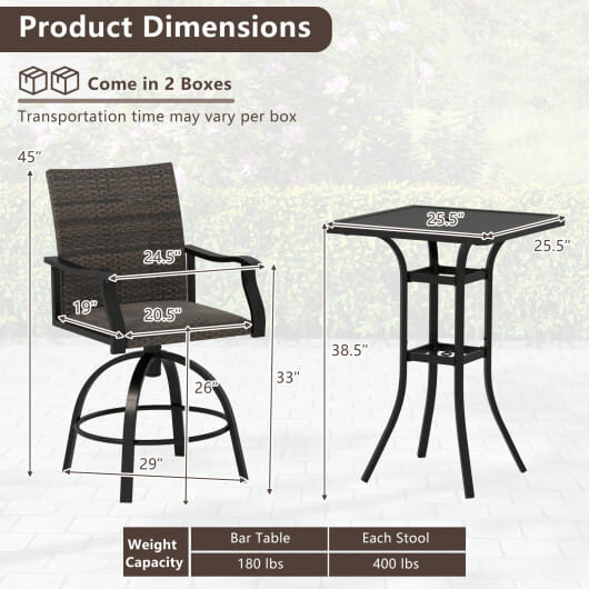 Be the first to review “3 Pieces PE Wicker Patio Swivel Bar Set with Quick-Drying Foam-Black”