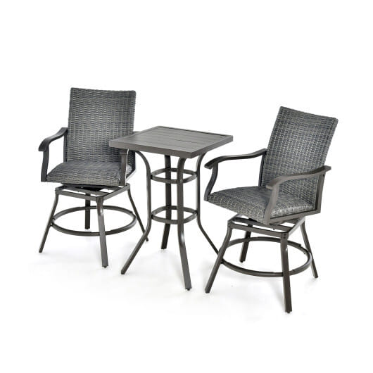 ● Adjustable footpads make bar table and chairs stand more stably