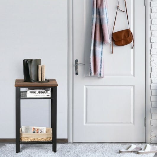 A simple shape can integrate into any decoration style perfectly. Featuring particle board and steel frame this table has high durability to provide a long time service for your family. Ample storage space including desktop and lower shelves provides enough space for you to place remote control books ornaments etc.