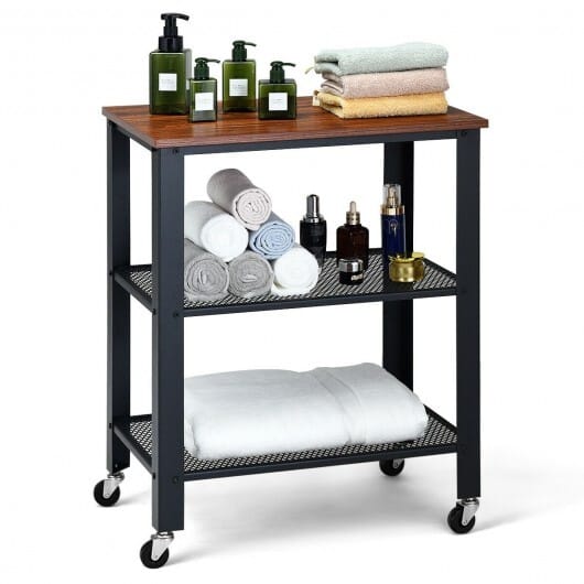 3-Tier Kitchen Utility Industrial Cart with Storage-Brown