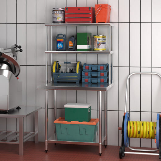 ● Experience the durability and versatility of the stainless steel overshelf.
