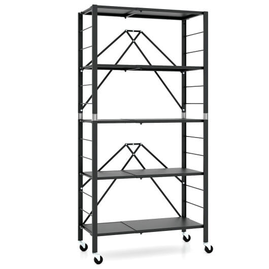- ● 5-tier storage shelf provides ample space for daily supplies