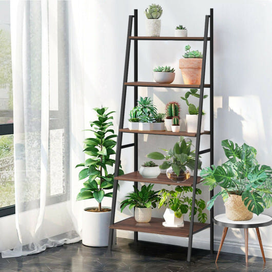 When you need more storage space and make full use of the limited space in your home please consider our stylish 5 tiers ladder shelf.