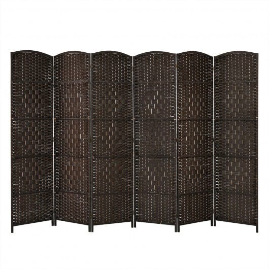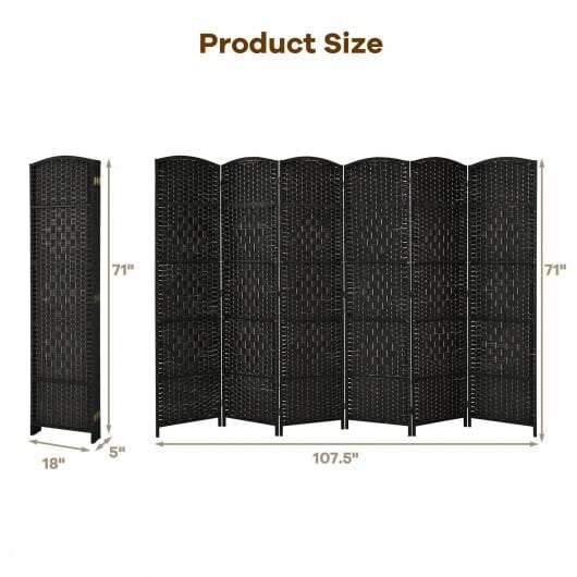 6.5Ft 6-Panel Weave Folding Fiber Room Divider Screen-Black