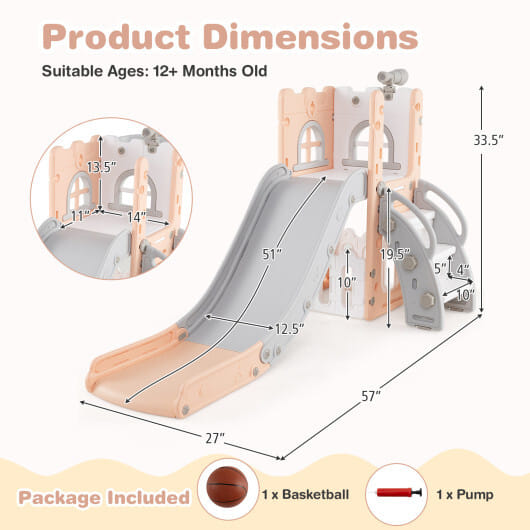 ● Includes telescope climber slide basketball hoop hiding spot and storage