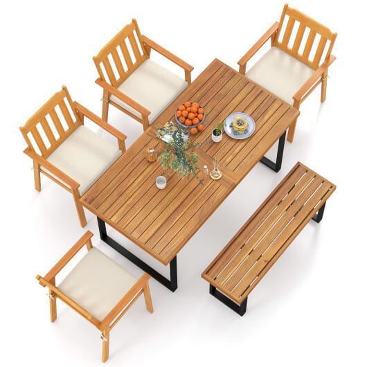 ● Slatted tabletop and seat allows for easy maintenance